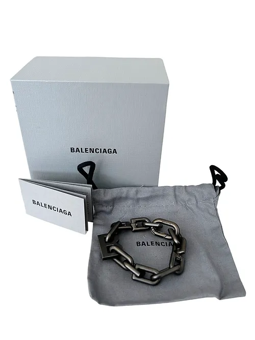 Introducing the Balenciaga B Chain Bracelet – a stunning fusion of elegance, modernity, and iconic design. This exquisite piece from the revered Balenciaga brand captures the essence of luxury and sophistication, making it a must-have addition to your jewellery collection.