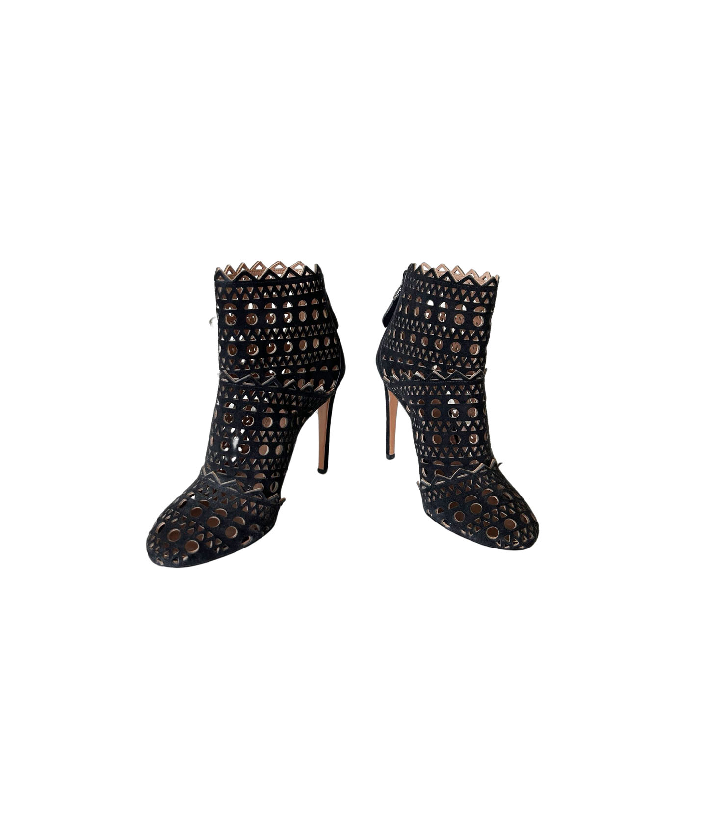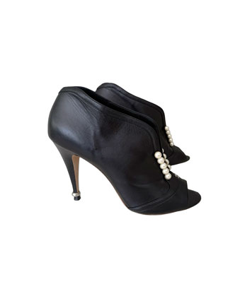 A true embodiment of Chanel’s timeless elegance, the Chanel Pearl Open Toe Booties bring sophistication and modern glamour to any wardrobe. Crafted from luxurious leather, these booties feature a chic open-toe design, offering a contemporary yet classic appeal.