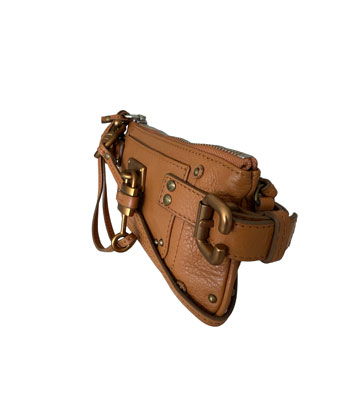 This charming Chloe Leather Mini Paddington Clutch Bag is perfect for carrying your essentials, featuring a mini Chloe lock and key for a signature touch. Designed for versatility, it can be worn as a wristlet, a small shoulder bag, or even as an elegant accessory inside your favorite tote. This trendy bag is the ultimate blend of style and practicality.