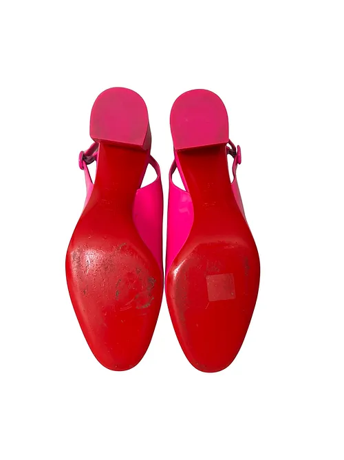 These slingbacks are a breath of fresh air and are sure to turn heads. Their condition is pristine. There is a slight mark on the left shoe on the top left side. They present as new and come with a dustcover.