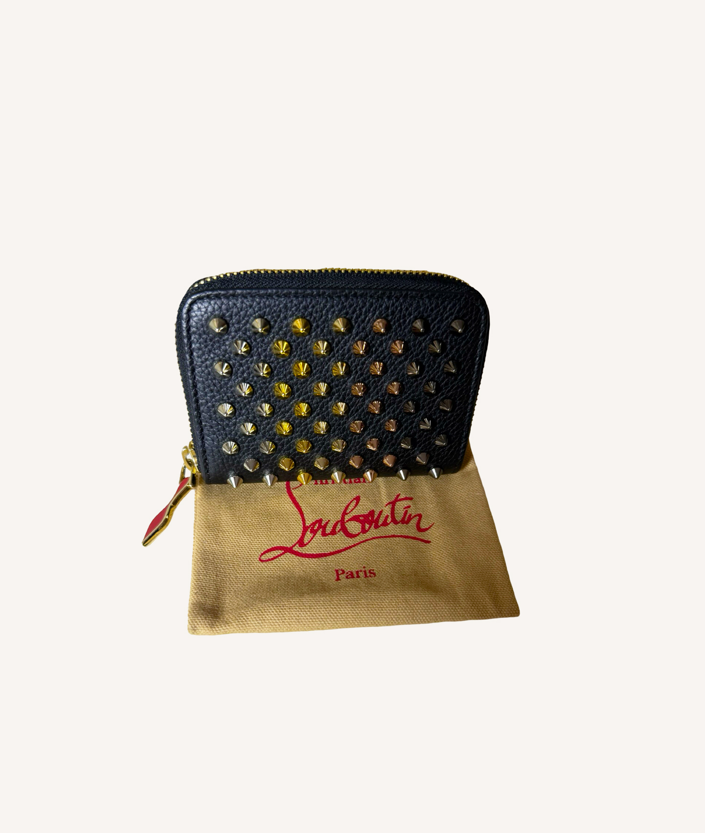 Elevate your everyday essentials with the Christian Louboutin Spike Accent Leather Wallet. Crafted from premium calfskin leather, this sleek wallet features signature metallic Louboutin spike embellishments on the exterior. Inside, you’ll find a thoughtfully organized interior with multiple card slots, a zippered coin pouch, and bill compartments. Finished with the iconic red leather interior detail, this wallet is a statement piece
