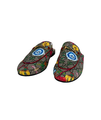 The iconic Princetown silhouette is enhanced with a vibrant floral pattern, offering a charming fusion of elegance and playfulness. These loafers will elevate your look.