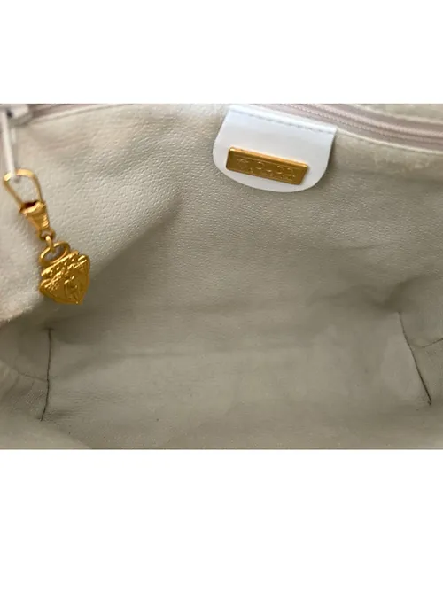 The vintage Gucci Floral Shoulderbag exudes timeless elegance and embodies the brands signature style. The bag is made from canvas with a white leather trim and strap which adds refinement and durability. This bag is pre-loved. It has a small scuff on one bottom corner and there are a few negligable marks in various locations. The interior lining is slightly worn. The bag’s condition is very good.