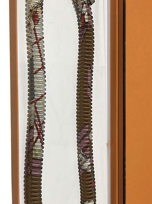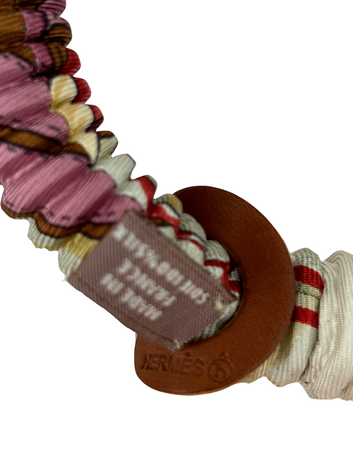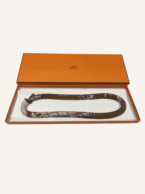 Pleated silk necklace, made from 100% silk. Every necklace has its own unique colours and patterns. The Hermes silk necklace appeals to individuals who appreciate the fusion of exquisite craftsmanship and timeless design. This is a statement piece that showcases individuality and style.
