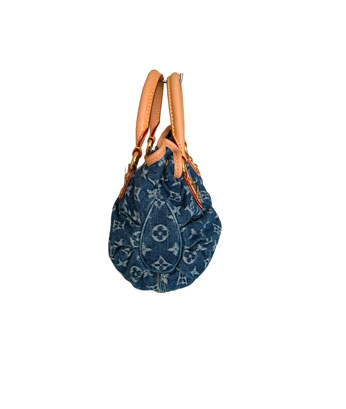 The Louis Vuitton Mini Pleaty is a chic and compact handbag that brings a casual yet luxurious vibe to any outfit. Crafted from Monogram denim canvas, this adorable bag features a soft, slightly faded wash for a vintage-inspired look. The natural cowhide leather trim and gold-tone hardware add a refined touch, while the front flap with a lock closure ensures both style and security. Despite its petite size, the Mini Pleaty is designed to hold your essentials with ease, offering a playful yet sophisticated handbag option