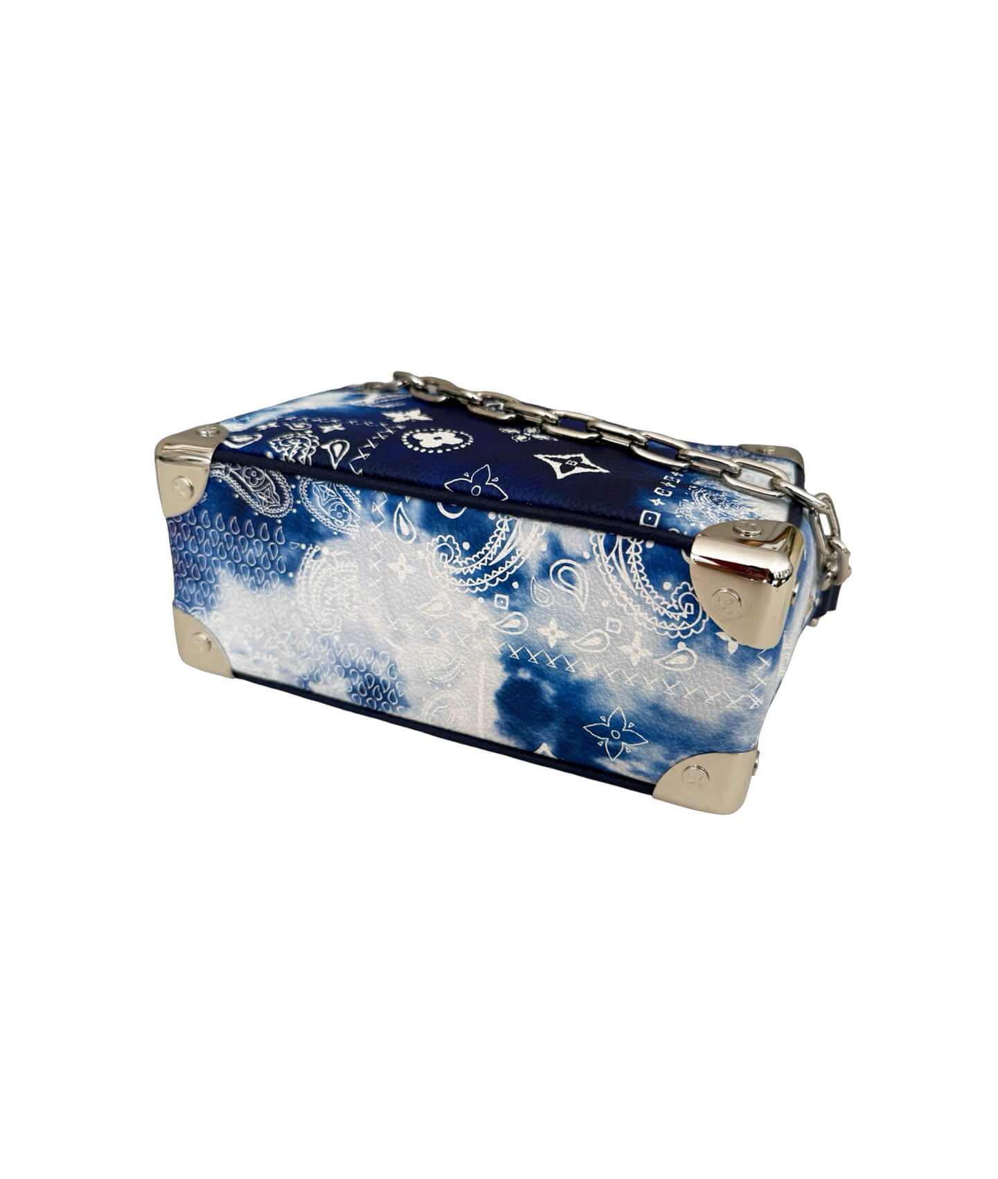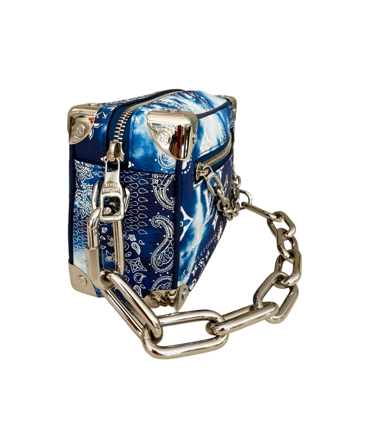 The Louis Vuitton Mini Soft Trunk in Bandana Monogram is a standout piece that merges the Maison’s iconic craftsmanship with bold, streetwear-inspired design. Inspired by Louis Vuitton’s heritage trunks, this compact crossbody bag features a structured rectangular silhouette, accented with reinforced corners and bold silver-tone hardware. Crafted from Monogram canvas overlaid with a paisley-style bandana print, this Virgil Abloh limited-edition design adds an edgy twist to the classic silhouette and is considered a collector’s piece. The leather and chain strap is adjustable for comfortable crossbody wear, while the zipped closure keeps your essentials secure. Whether you’re adding flair to everyday wear or making a statement at a special event, the Mini Soft Trunk is a collector’s piece for the modern fashion enthusiast.