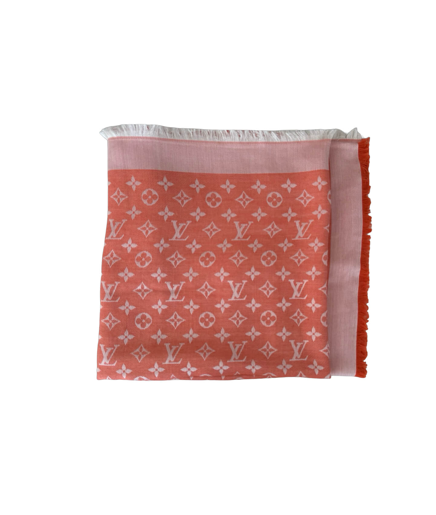 Elevate your style with the Louis Vuitton Monogram Shawl in a vibrant orange and white, blending bold fashion with classic heritage. Woven from a sumptuous silk and wool blend, this luxurious scarf is ultra-soft, lightweight, and effortlessly drapes for a refined look. Adorned with the iconic LV monogram pattern, it’s a standout accessory that adds a pop of color to any outfit, whether worn around the neck, over the shoulders, or styled as a wrap. A versatile and timeless piece, perfect for both seasonal layering and year-round chic.