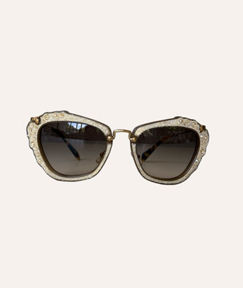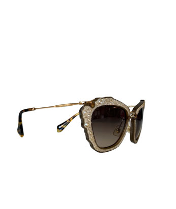 The Miu Miu Crystal Cat-Eye Sunglasses exude glamour and sophistication, featuring a striking cat-eye silhouette adorned with sparkling crystal embellishments for a bold and luxurious statement. Crafted with premium materials, they offer both comfort and durability, while the tinted lenses provide UV protection and a touch of mystery.