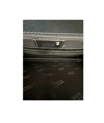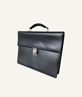 The Meisterstück Briefcase showcases a contemporary design. Crafted from a luxurious deep-shine black leather, every detail reflects Montblanc’s signature style. The bag features a vintage palladium-finish closure with a subtle logo. Thoughtfully designed interior compartments and an external rear pocket provide practicality and organization.