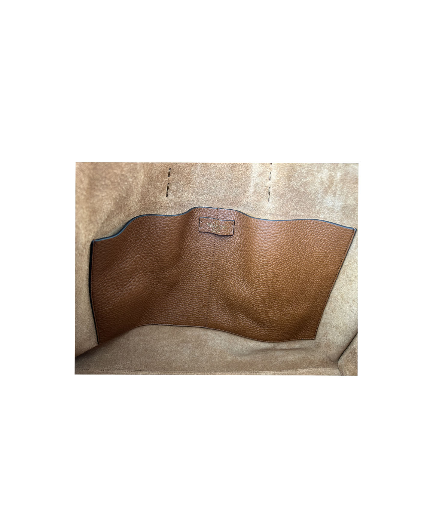 This Valentino tote exudes both luxury and practicality, crafted with a spacious silhouette and structured design. The tote boasts a luxurious suede-lined interior, offering a soft, premium feel that contrasts beautifully with the exterior. The interior is thoughtfully designed with multiple internal pockets for essentials. For added versatility, the bag comes with a detachable strap. The Valentino tote effortlessly blends style and functionality.