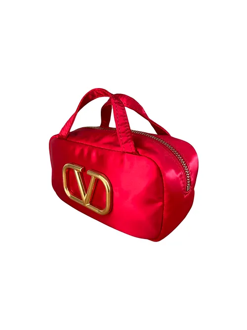 Simultaneously iconic and understated, Valentino Garavani’s VLogo carries the Maison’s legacy of elegance. Compact in size for cosmetics, this makeup bag is presented in a bright red hue . This item is Brand New.
