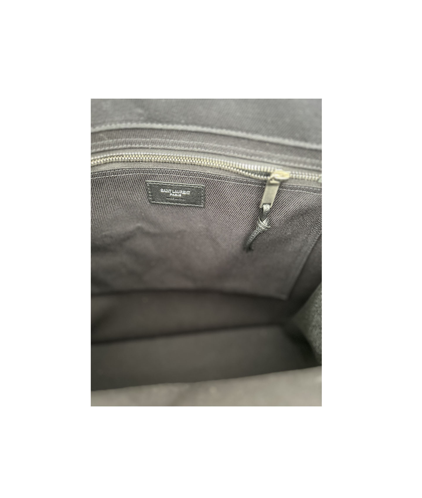 Beautiful Saint Laurent black linen shopper with leather finish. All your essentials can fit into this functional yet stylish bag. Featuring top handles, , an internal zipped pocket, a printed logo to the front and three Saint Laurent-engraved snap buttons along the closure to secure your belongings.